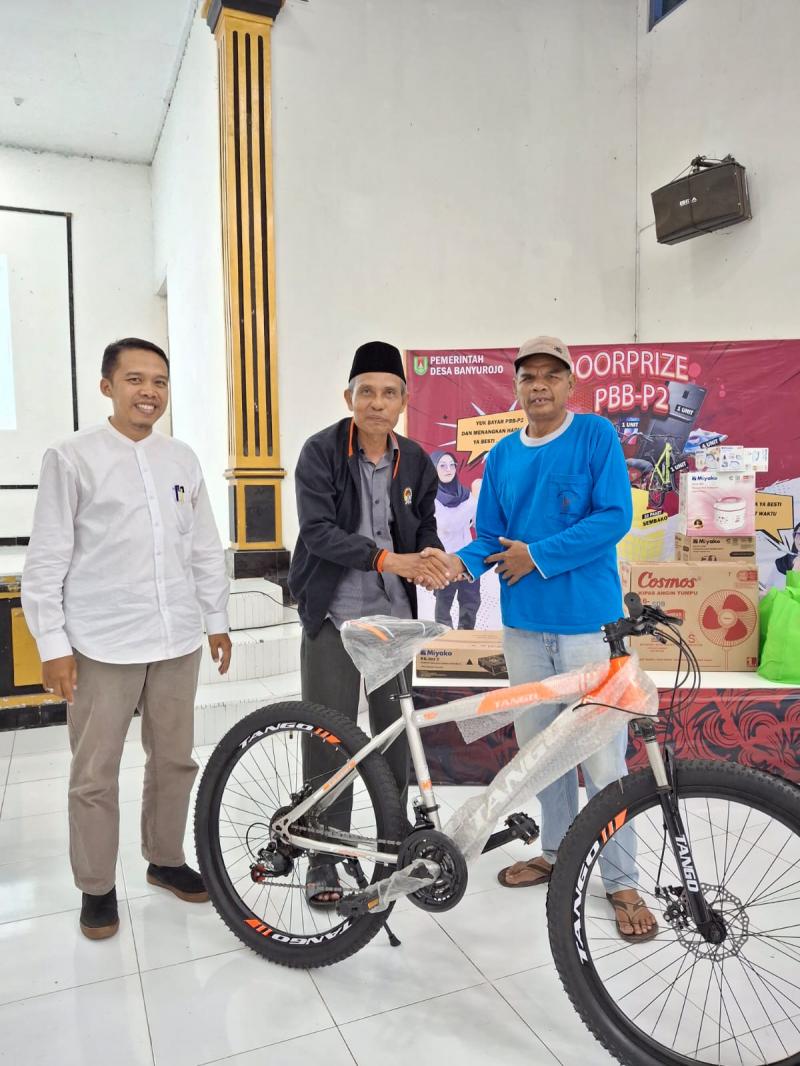 Pada hari Senin tanggal 05 Mei 2025 bertempat di Gedung Wisma Nugraha Desa Banyurojo telah dilaksanakan kegiatan Sosialisasi dan Pengundian Doorprize PBB Desa Banyurojo. Dihadiri oleh Camat Mertoyudan, Kepala Desa, Ketua BPD, Anggota BPD, Perangkat Desa, Ketua RT, ketua RW dan tokoh masyarakat.