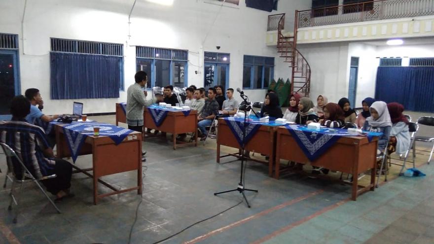 DESA BANYUROJO - Sabtu malam <29/11) raut muka bahagia nampak dari mimik muka pemuda-pemudi Karang Taruna Dusun Saragan saat mengikuti acara Pelatihan Pidato di Gedung Wisma Nugraha Desa Banyurojo. Sempat terlihat aneh memang di momen awal dibukanya acara. Pelatihan Pidato yang mungkin bagi sebagian pemuda merupakan hal yang membosankan, susah dan tak layak jual, ternyata mampu diracik menarik lewat gaya penyampaian Sunarto (pemateri acara) yang akhirnya direspon positif hingga akhir acara.